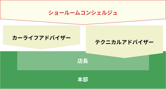 どのようなお客さまにもご満足いただける対応ができる(カーコンサルティング、苦情対応)管理業務ができる(基礎、入庫、生産性)