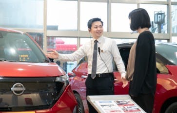 来店いただくお客様は、” クルマを 少しでも気になっている” “ この目で見てみたい” という日産車に 元から興味がある方が多いため、 高い営業スキルがなくても挑戦 できます! 特に新型軽電気自動車「サクラ」は 2022年5月の発表から2ヶ月で2万2000台 の受注で非常に好調です。